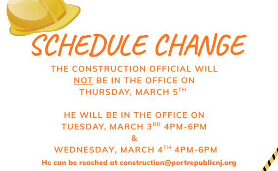 General Announcements Important Announcements Construction Official – Change of Schedule – Week of March …